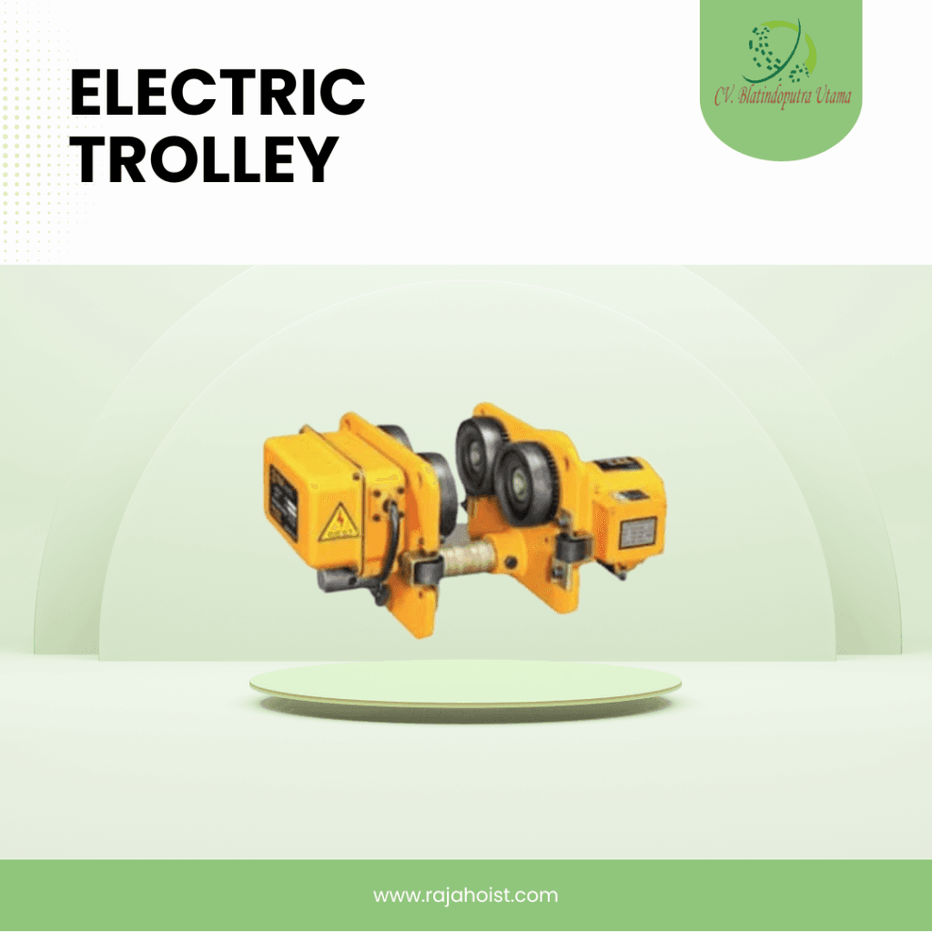 Sesuai dengan namanya, Electric Trolley merupakan salah satu jenis trolley yang digerakan denan tenaga listrik. Alat ini dipergunakan dalam berbagai jenis industri seperti bengkel besar dan pabrik produksi. Fungsi utamanya adalah membantu hoist mengangkat beban berat denganlebih efisien dan hemat waktu.