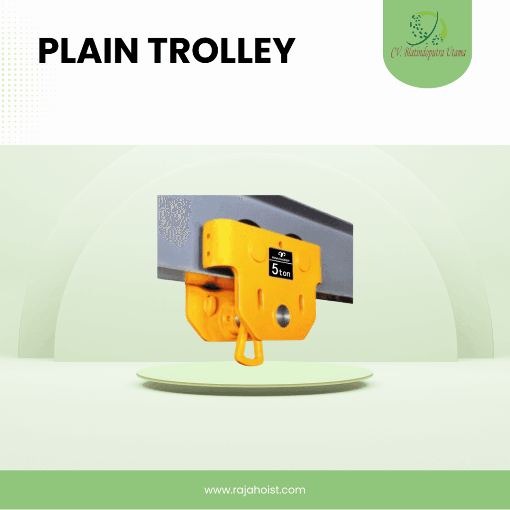 Plain Trolley merupakan salah satu jenis trolley yang dipergunakan dalam dunia industri. Alat yang dipergunakan untuk membantu memindahkan beban berat ini umumnya dipadukan dengan chain hoist baik versi manual maupun versi elektrik.
